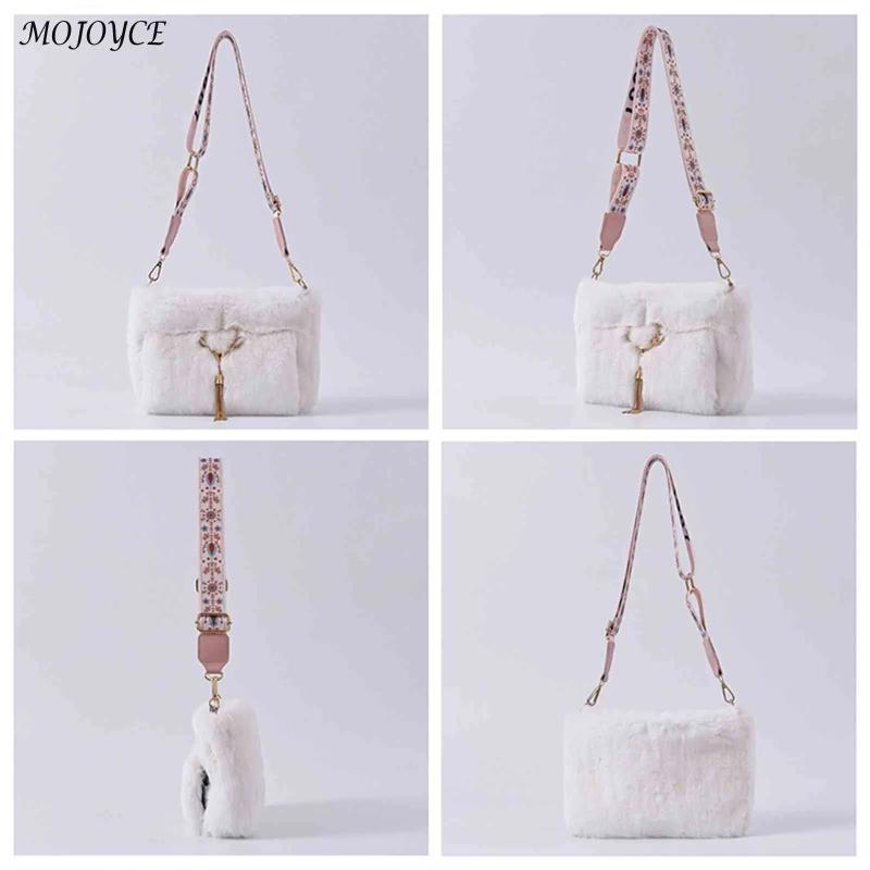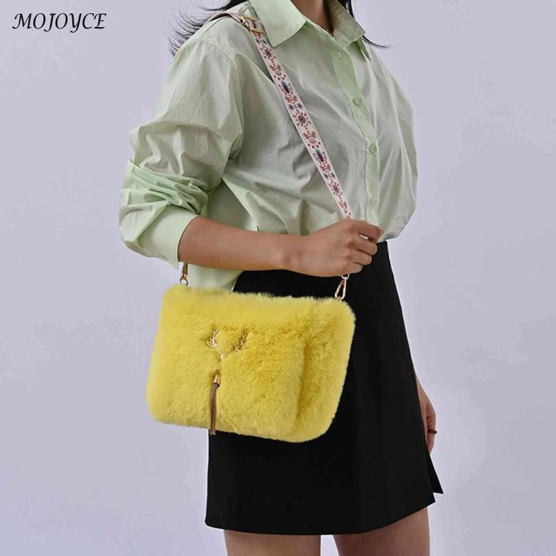 Plush Underarm Handbag with Chain Tassel for Women Girls