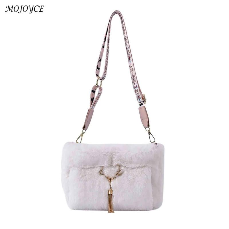 Stay stylish and cozy this autumn and winter with this plush underarm handbag featuring a deer chain tassel. Includes adjustable strap for a customized fit.
