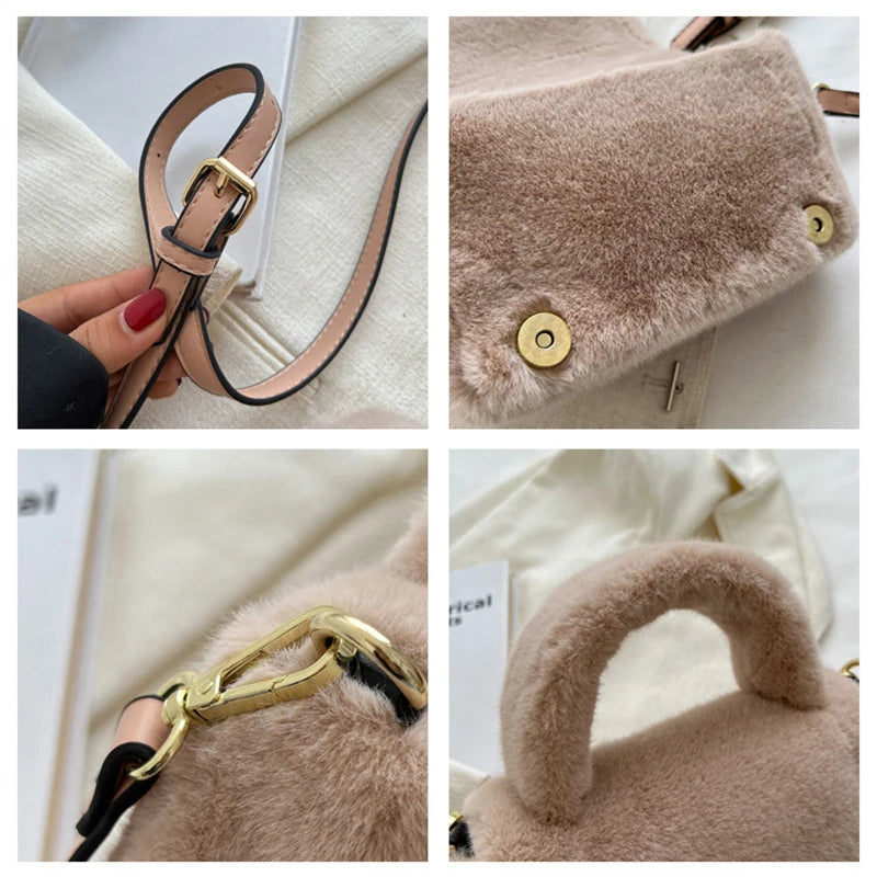 Plush Winter Shoulder Bag for Women Small Fur Crossbody Handbag