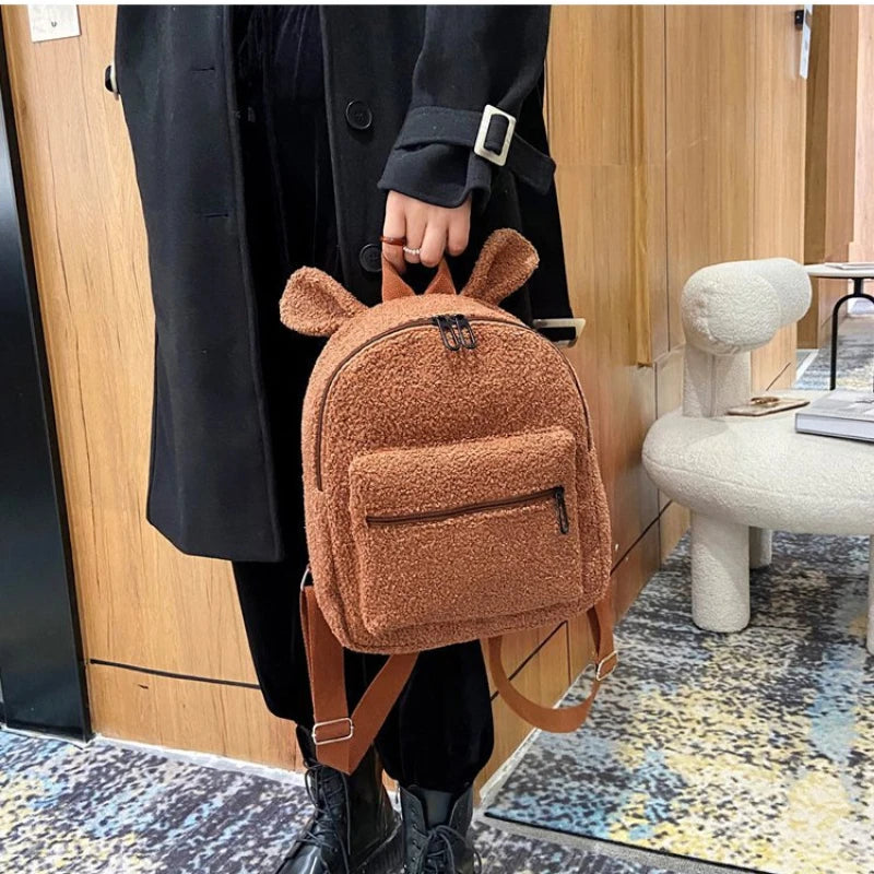 Plush Women Backpack Large Capacity Lightweight Travel Bag