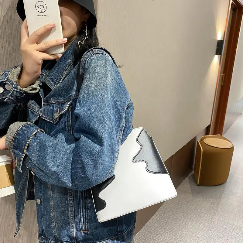 PU Cow Pattern Mini Shoulder Bag Women Underarm Tote Bags Ins Style Summer Haraj