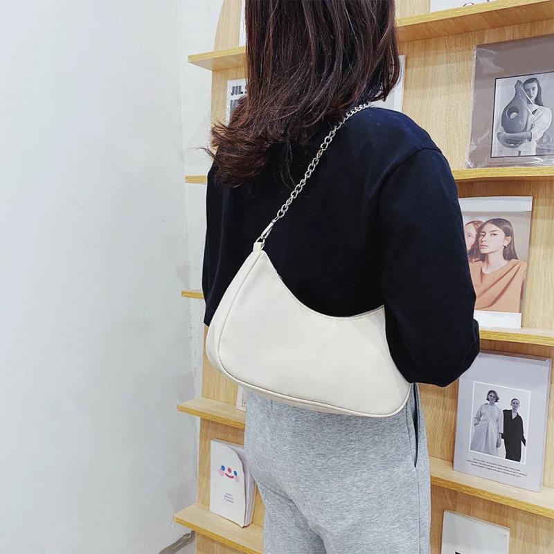 This underarm bag is made of high-quality PU leather, featuring a retro solid design. Perfect for stylish ladies, girls, and small shoulder bag enthusiasts.