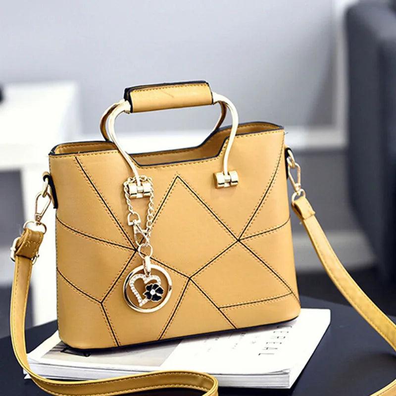 This stylish shoulder bag is made of high-quality PU leather with sweet handbag design, perfect for women. It features a satchel style with crossbody lines that add a touch of elegance to your outfit.