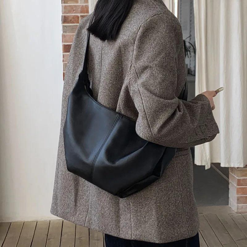 This women's shoulder bag is made of high-quality PU leather, featuring a large capacity and a simple dumpling bag design. Perfect for travel and daily use.
