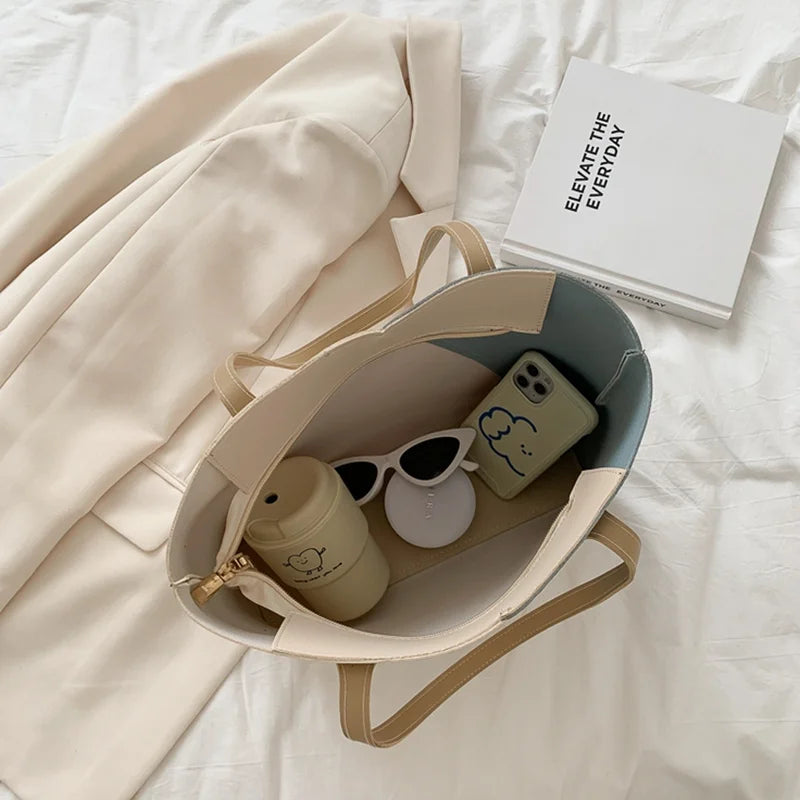PU Leather Shoulder Bags Women Patchwork Handbag Totes Female