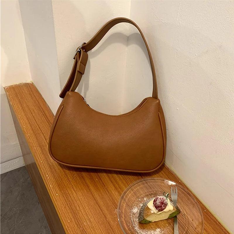 PU Leather Women Underarm Bag Retro Solid Ladies Handbags