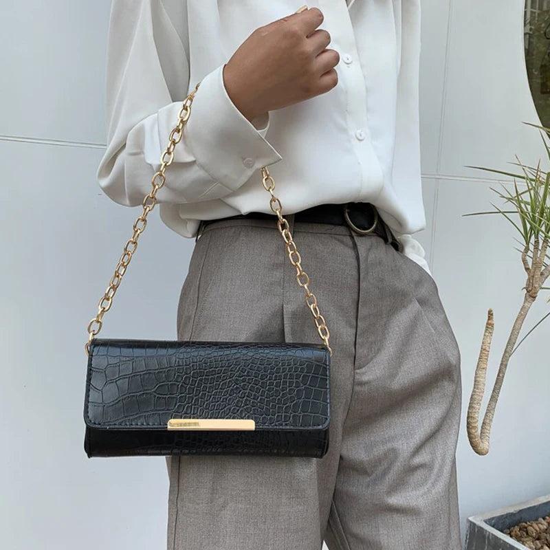 - Solid texture and chain strap