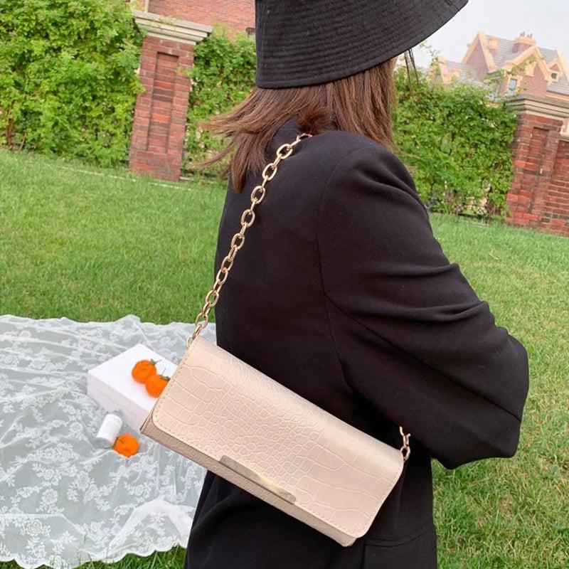 Pu Women's Flap Bag Texture Solid Chain Shoulder Bag