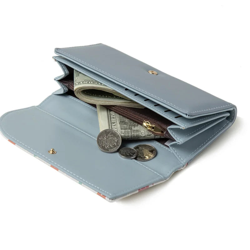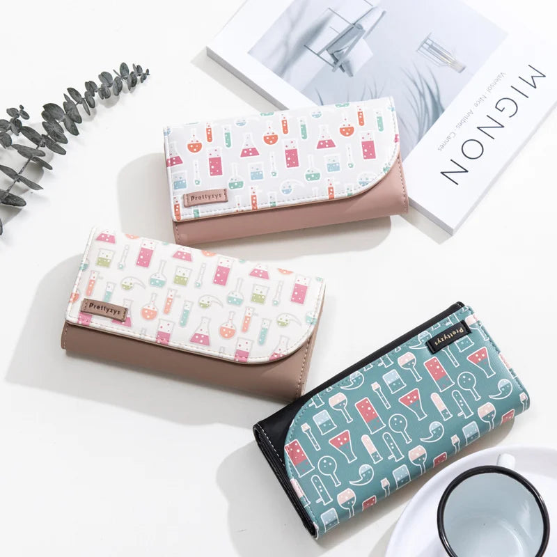 Puriti Long Wallet Small Fresh PU Leather Three Fold Large Capacity