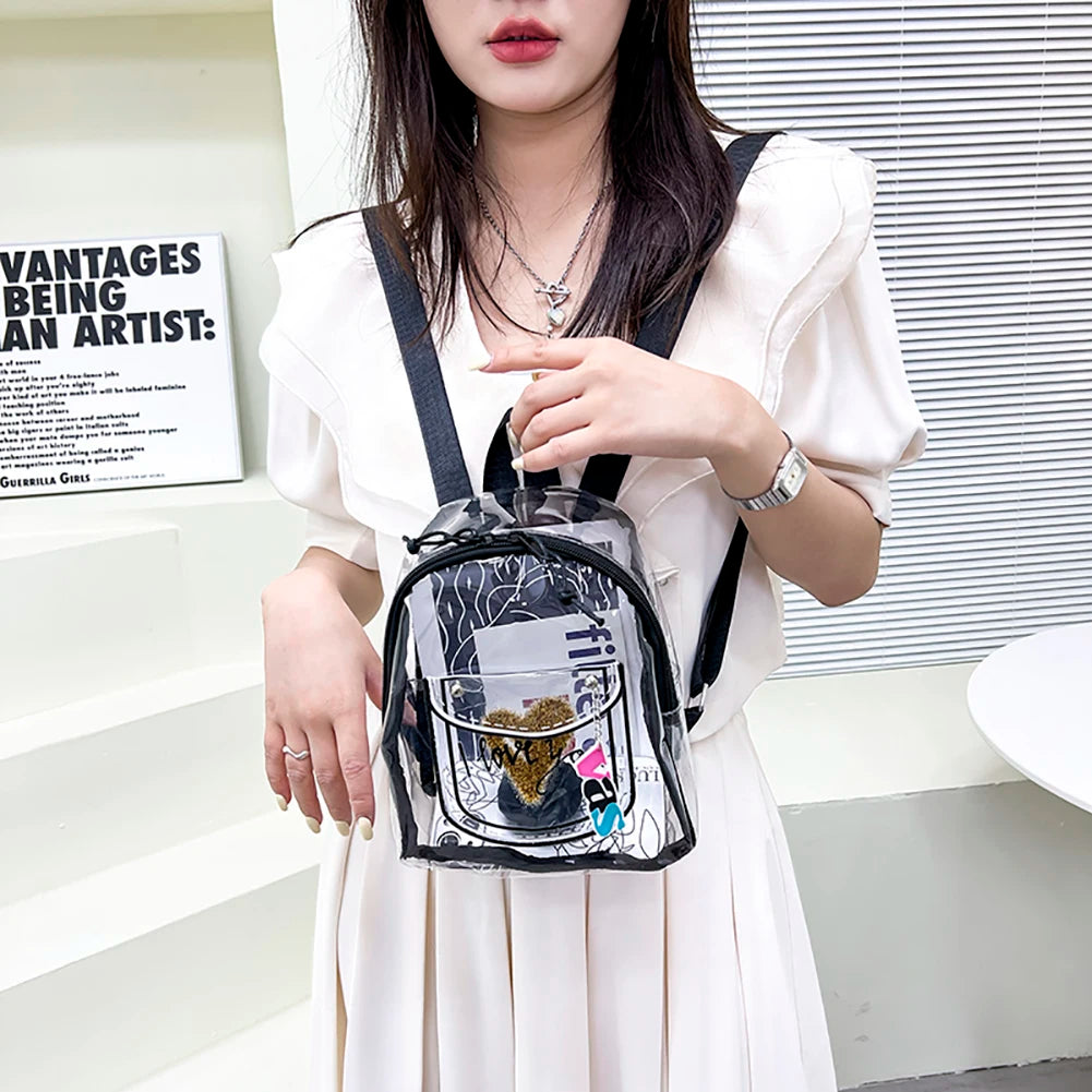 PVC Transparent Backpack Letter Love Women Girl Travel Small Shoulder Schoolbag