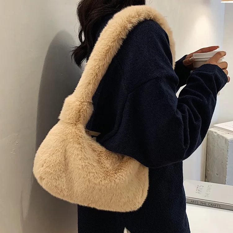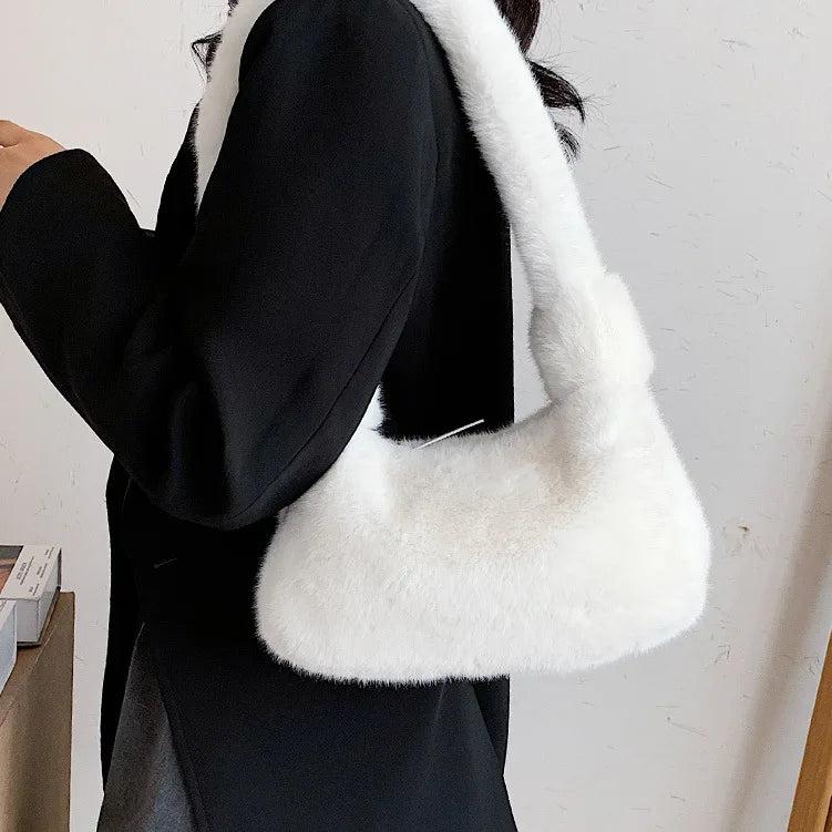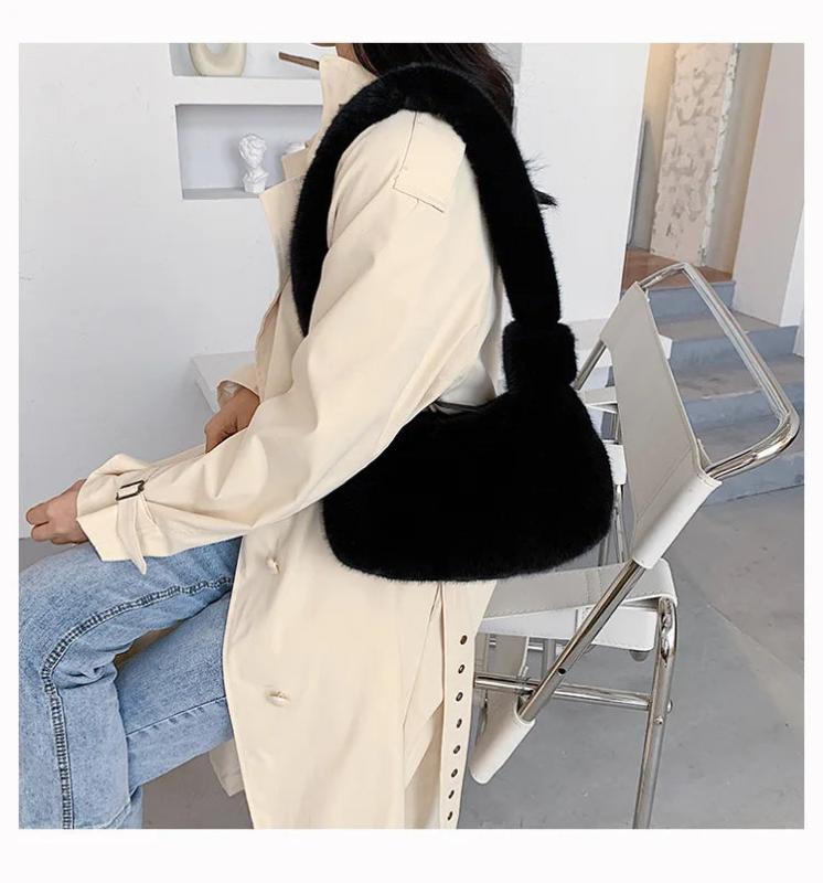 Stay stylish and cozy with this plush underarm bag, perfect for autumn and winter. Its soft, fluffy design adds a touch of elegance to your outfit.