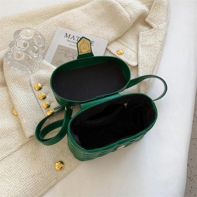 This stylish handbag is perfect for any woman with its vintage quilted design and high-quality leather material. It can be used as a clutch purse or with the top handle for added convenience.