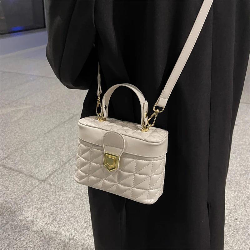 Quilted Box Handbag Vintage Clutch Purse High Leather Top Handle