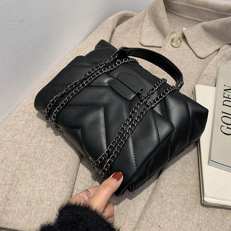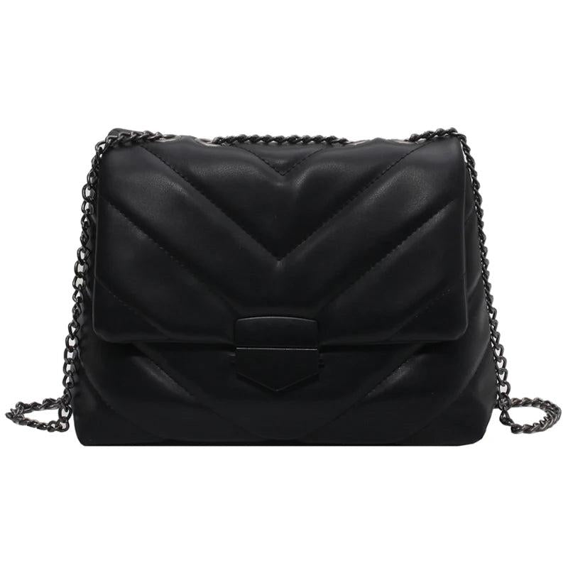 This stylish shoulder bag is made of high-quality PU leather, featuring a quilted design. It comes with a chain strap and a small flap closure, perfect for carrying your essentials.