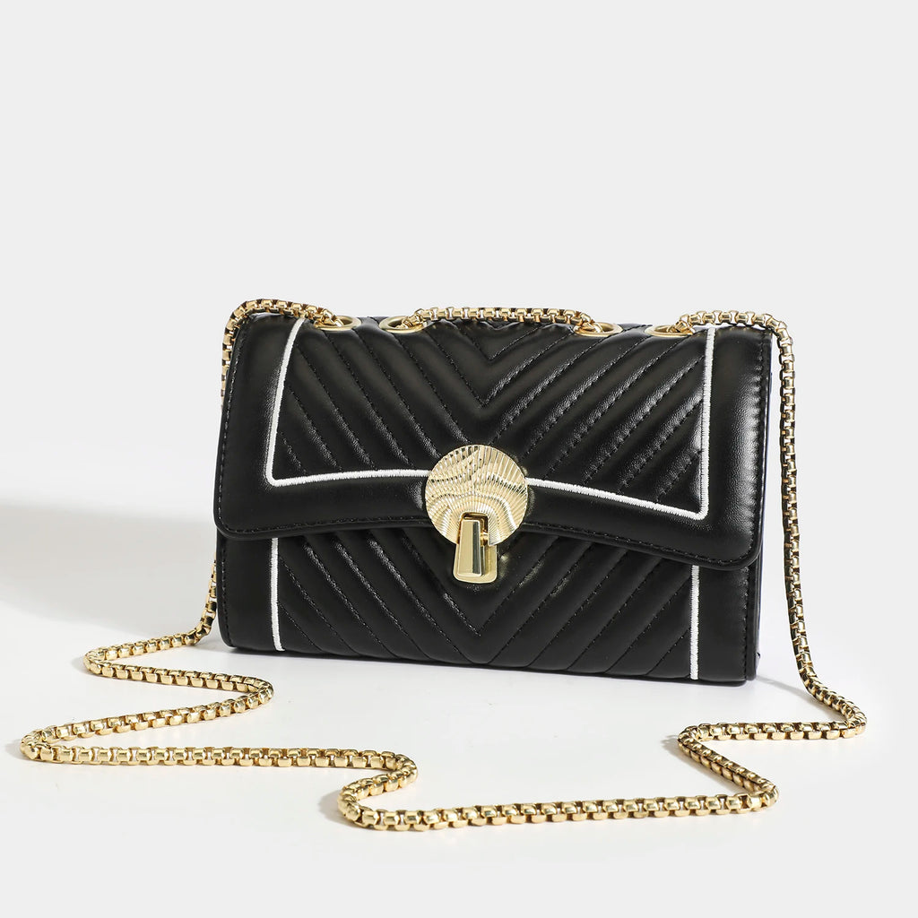 Elegant and chic quilted embroidery handbag made of high-quality PU leather. Features a stylish design with chain strap, perfect for daily use.
