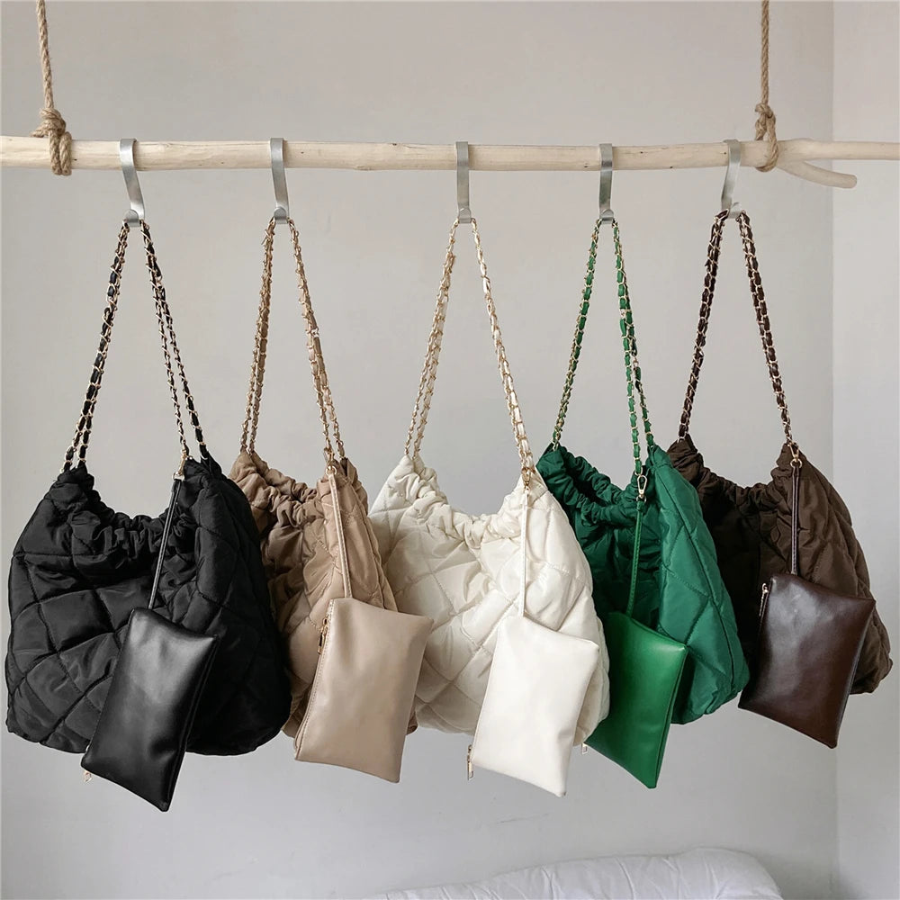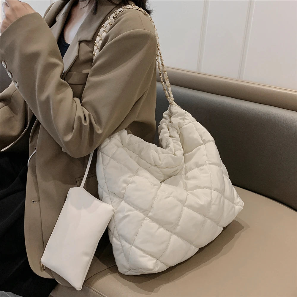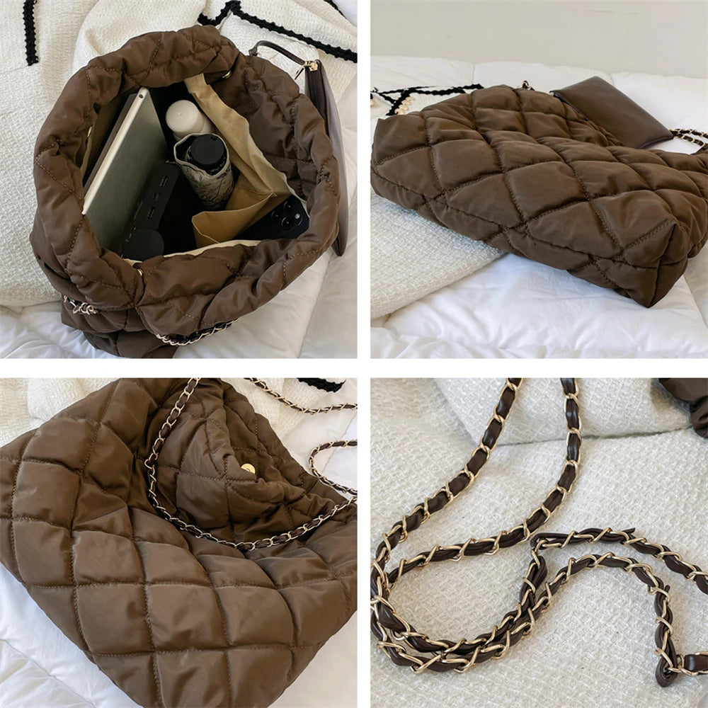 Quilted Nylon Chain Shoulder Bag for Women Winter