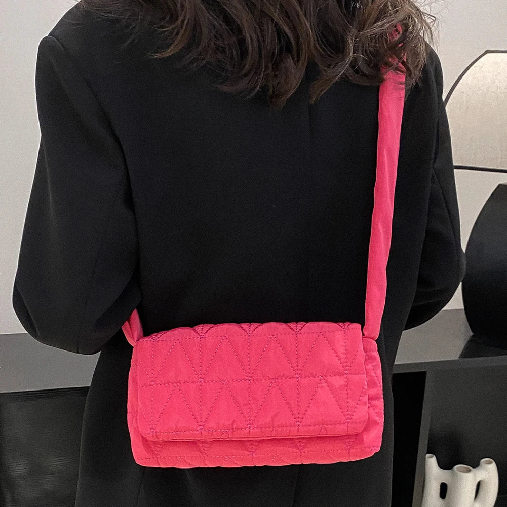 This stylish crossbody bag features a quilted rhombus design and a small square flap pocket. It is perfect for women and girls for travel, office, or everyday use. The bag is made of cotton and padded for durability and comfort.