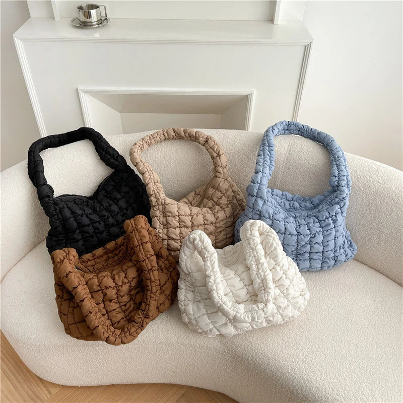Quilted Shoulder Bag For Women Pleated Cloud Bag LightWeight Large Cap