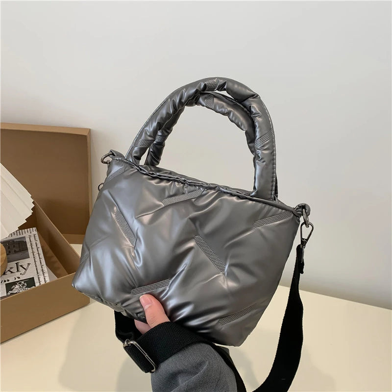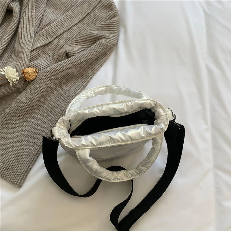 Stay stylish and organized with this soft quilted messenger purse that features a padded design. Perfect for winter season.