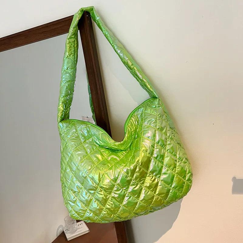 Rainbow Puffy Padded Quilting Tote Bag for Women