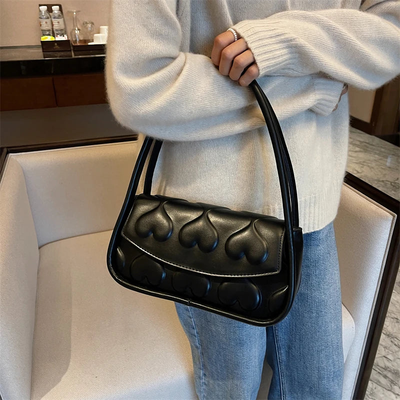 Red Heart Texture Small Square Shoulder Bag Ladies Top Handle Underarm Bag