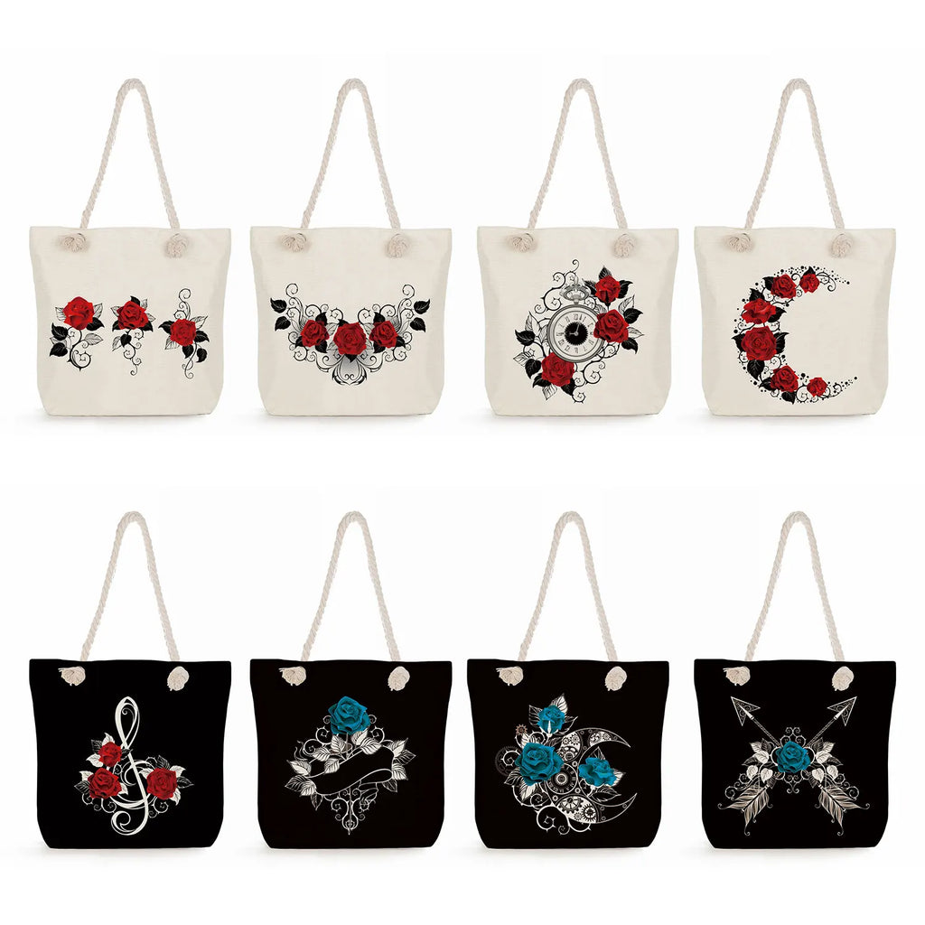 Red Rose Tote Bag Floral Print Women Casual High Capacity Handbag