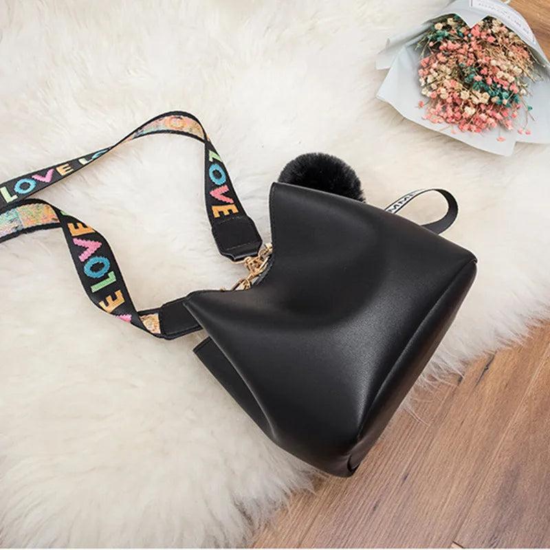 Retro Bucket Bag Crossbody Tote Mini Hair Ball Decor