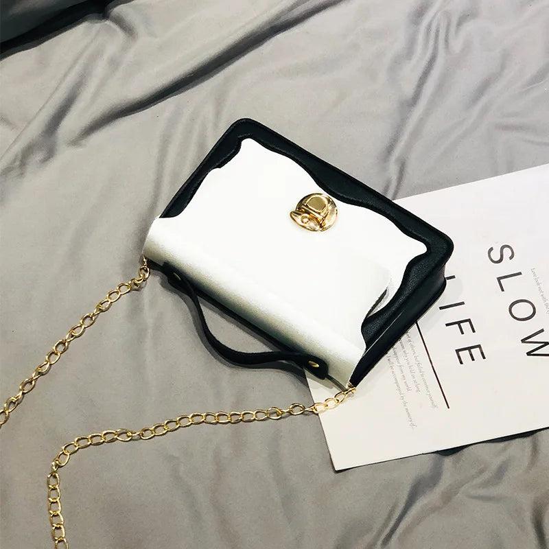 Retro PU Leather Patchwork Chain Messenger Shoulder Bag Women Lock Buckle