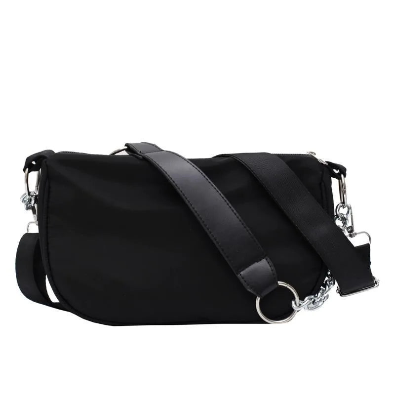 Stay stylish with this solid retro shoulder bag featuring a nylon chain design. Perfect for shopping or daily use.