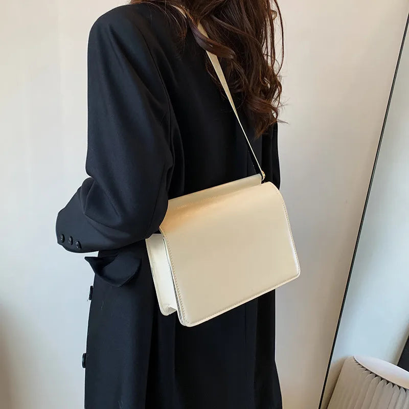 Retro Solid PU Leather Crossbody Shoulder Bag for Women