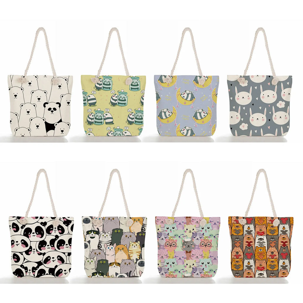 Stay eco-friendly with these adorable reusable shoulder bags featuring cartoon animal designs. Perfect for grocery shopping, beach trips, and more.