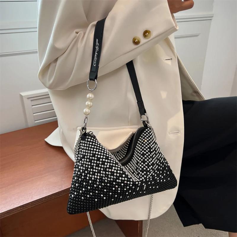 Elevate your style with this stunning Rhinestone Bling Crystals Shoulder Bag featuring a gradient diamond design on high-quality PU leather material.