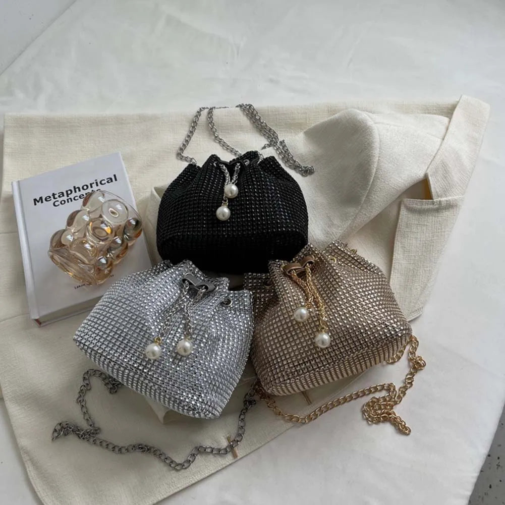 Rhinestone Chain Crossbody Bucket Messenger Handbag for Women