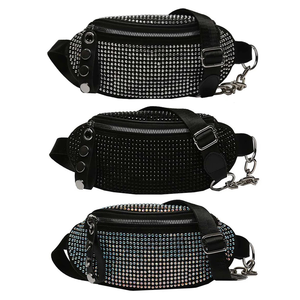 - Rhinestone waist bag with diamond chain strap
