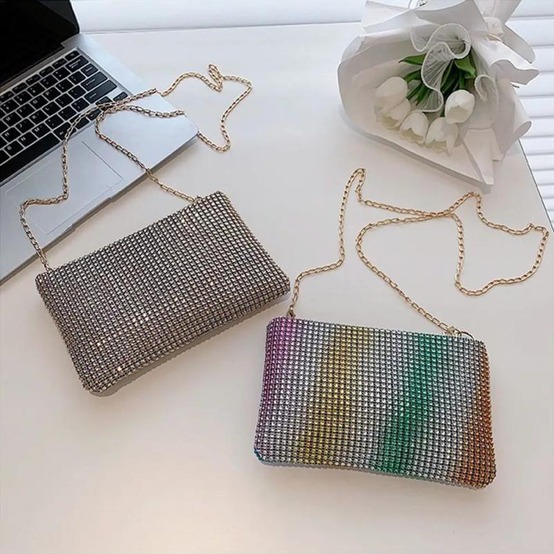 Rhinestones Chain Crossbody Bags Solid Shoulder Phone Pouch Lady Small