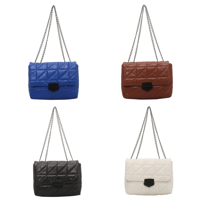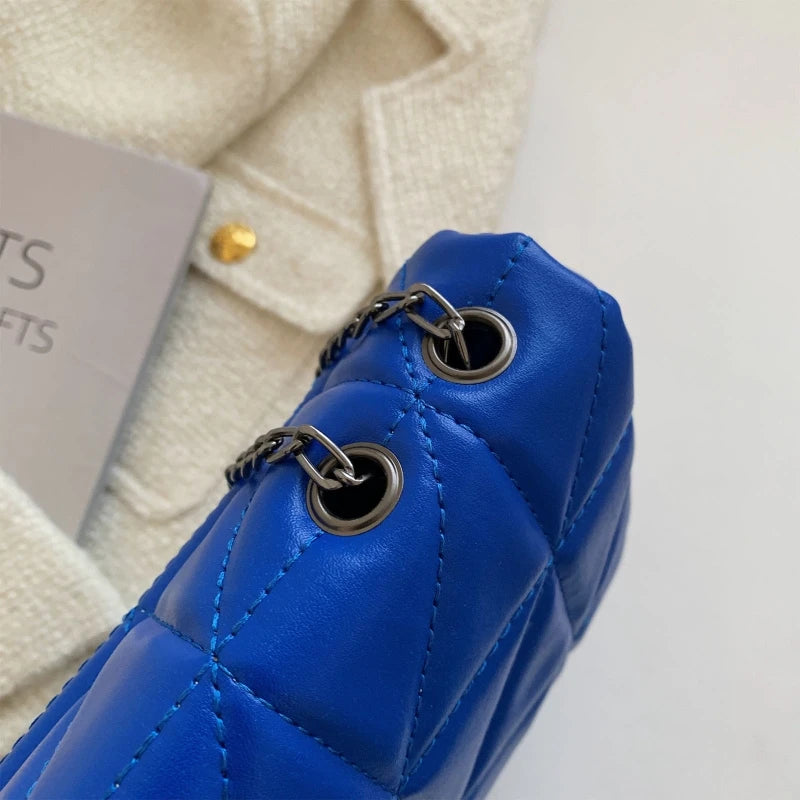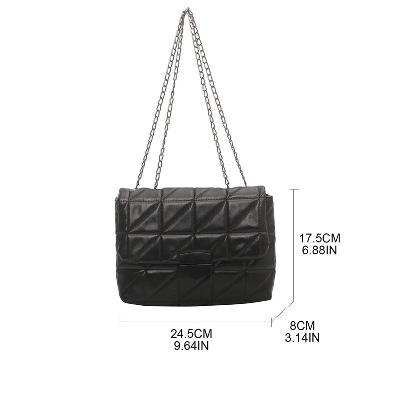 Elevate your style with this chic Rhombic Crossbody Bag featuring a retro chain strap and intricate embroidery thread design. This versatile bag can be worn as a shoulder bag or a clutch.