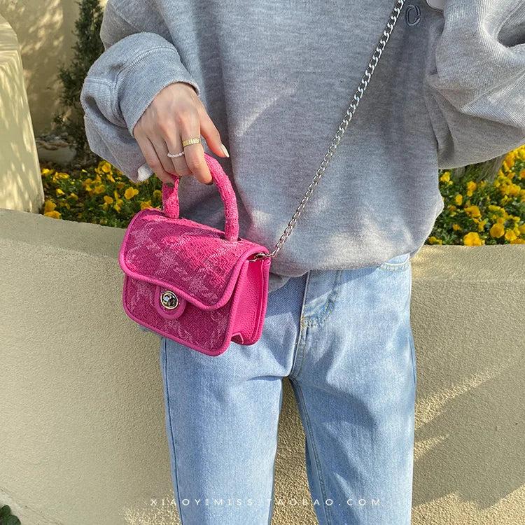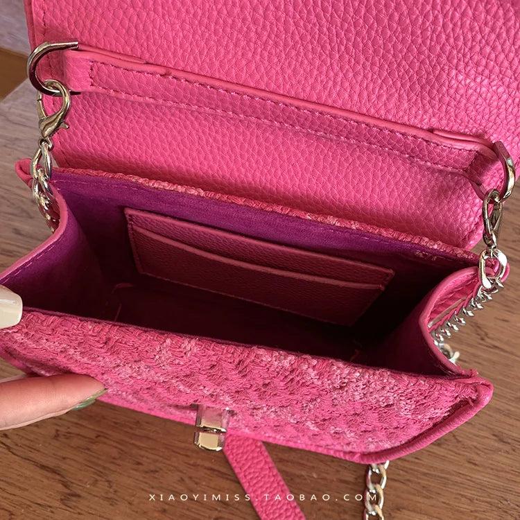 Rose Woolen Shoulder Bag Lock Plaid Pattern Small Chain Crossbody Bags