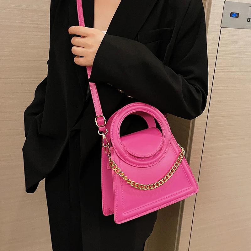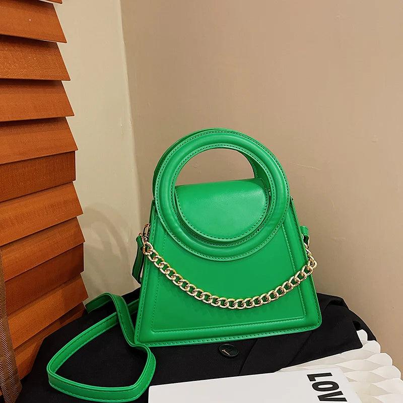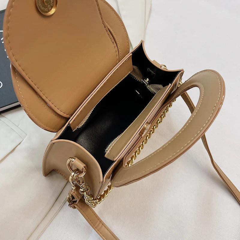 This chain ladies handbag clutch bag is a stylish accessory for women. Made of high-quality PU leather, it features a round top handle and a versatile design that can be worn as a tote bag or a crossbody bag.