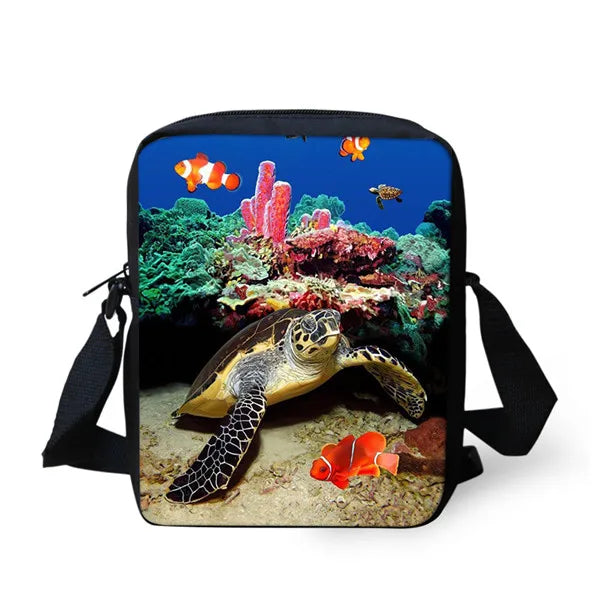 Sea Turtle Pattern Shoulder Messenger Bag for Girls and Boys