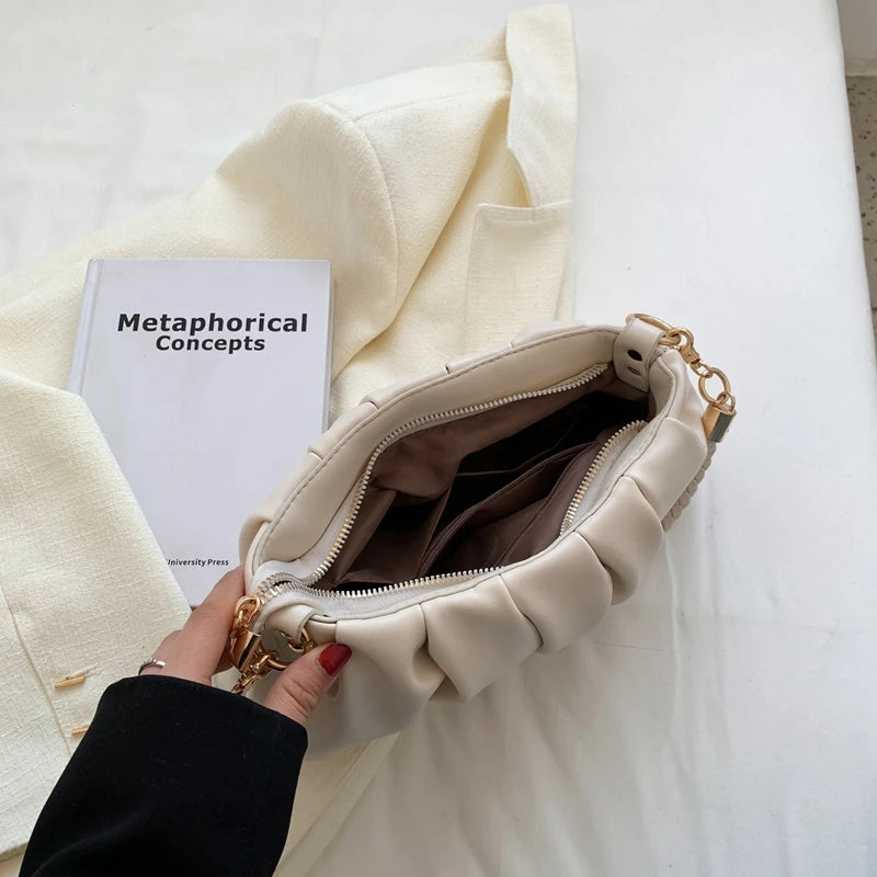 This stylish shoulder bag is made of PU leather, featuring a solid design. It's perfect for women who want a combination of fashion and functionality.