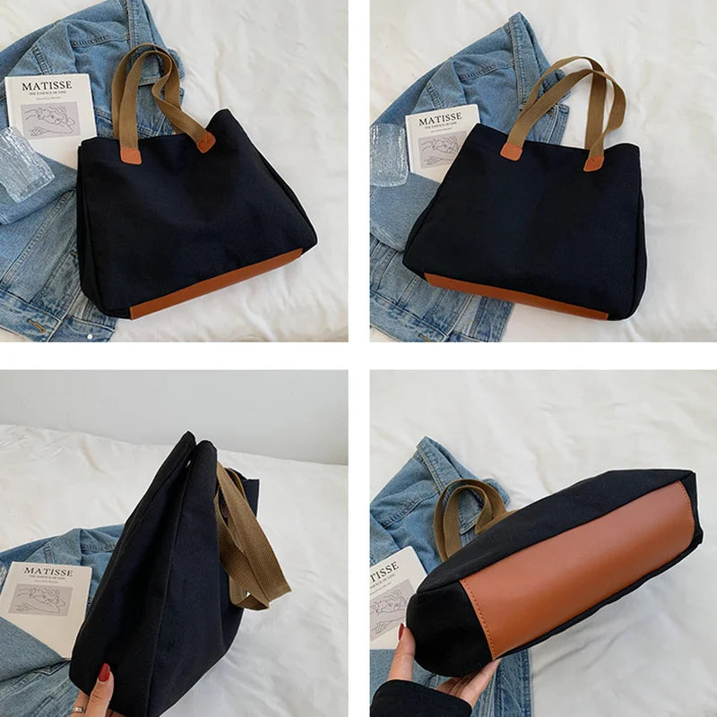 Shoulder Bags Women Casual Large Capacity Patchwork Canvas Ladies