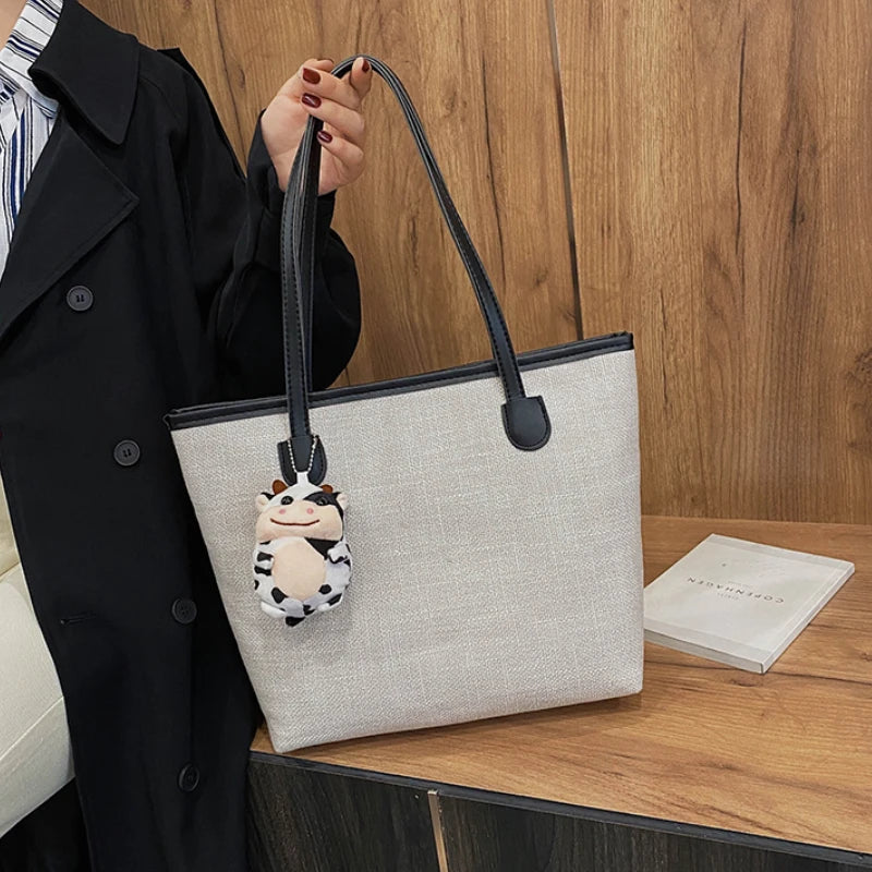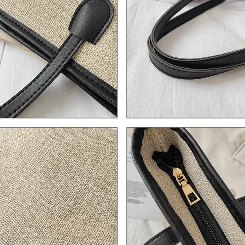 This shoulder bag is designed for women with a large capacity for daily shopping and travel. Made of canvas, it is durable and waterproof. The patchwork design adds a trendy touch to the bag.