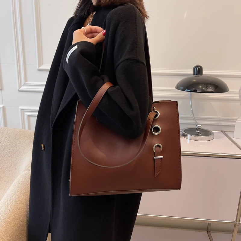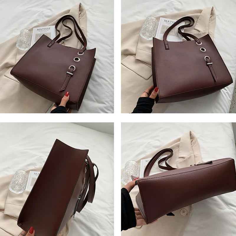 Shoulder Bags Women Large Capacity PU Leather Handbag Retro Portable Casual Tote