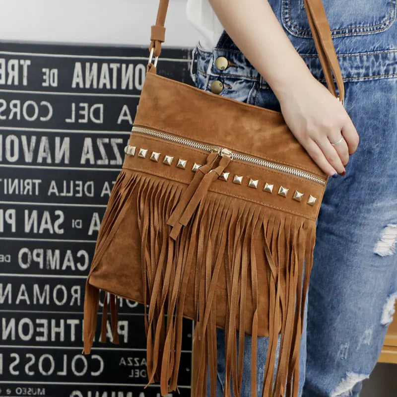 Shoulder Messenger Bag Tassel Women Handbag Crossbody Studded Bag
