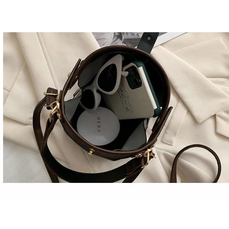 This small bucket bag is a stylish and versatile accessory for women. Made of high-quality PU leather, it features a zipper closure and can be worn as a crossbody bag. Perfect for everyday use.
