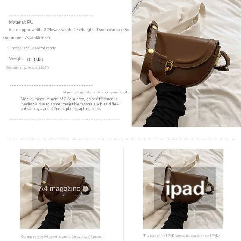This small crossbody bag is made of high-quality PU leather, perfect for everyday use. It features a saddle design and can also be used as a shoulder bag. Ideal for storing essentials like phone, keys, and wallet.