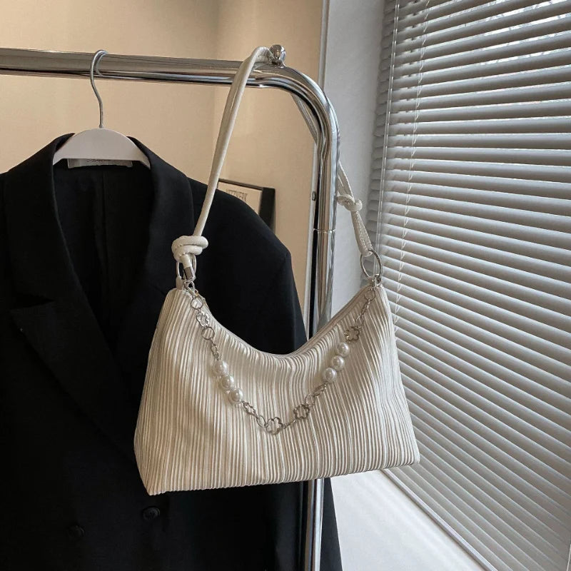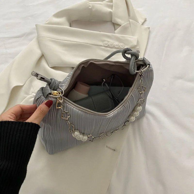 Small Fresh Chain Handbag Contrast Pleated Shoulder Bag Women