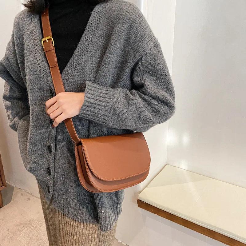Elegant and versatile saddle bag designed for women, perfect for winter fashion. Made of high-quality PU leather, this crossbody bag is both stylish and functional.