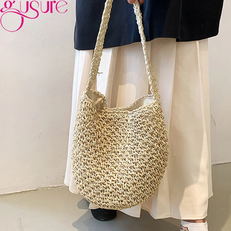 Description:Stay stylish and organized at the beach with this small straw woven shoulder bag that offers a large capacity. Perfect for carrying your essentials in a chic and trendy way.Features: Made of high-quality straw material for durability Ideal for summer outings, beach trips, and casual use Features a bucket design...