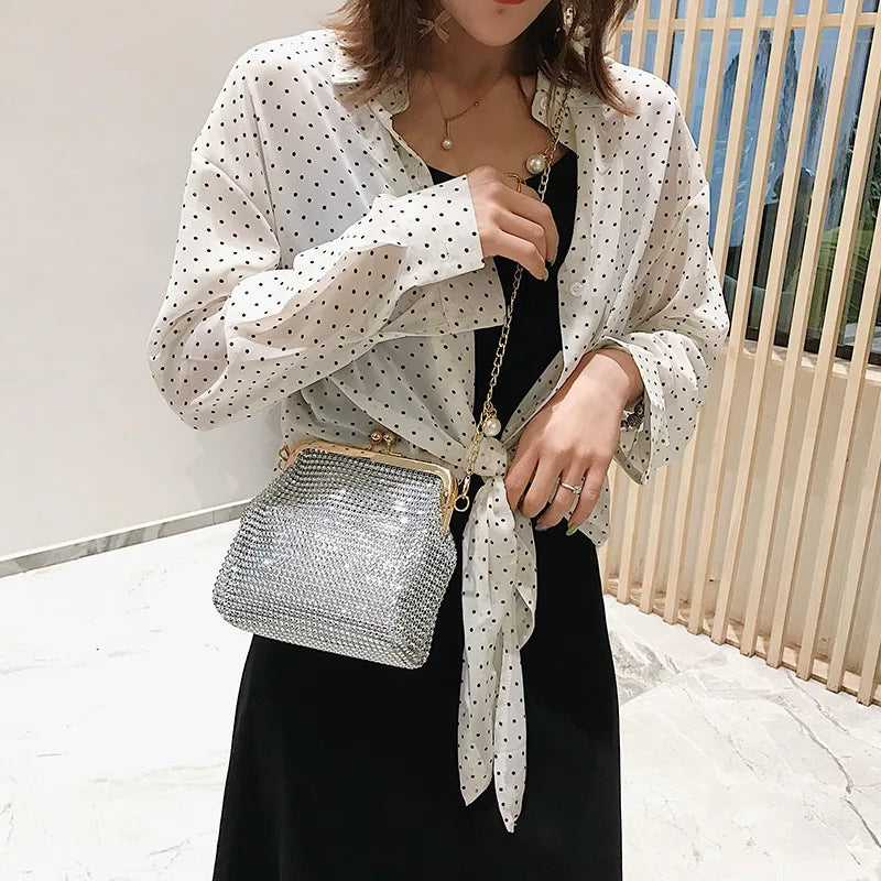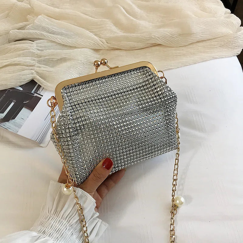 Elegant and stylish evening bag with soft bead diamond design, perfect for formal occasions.